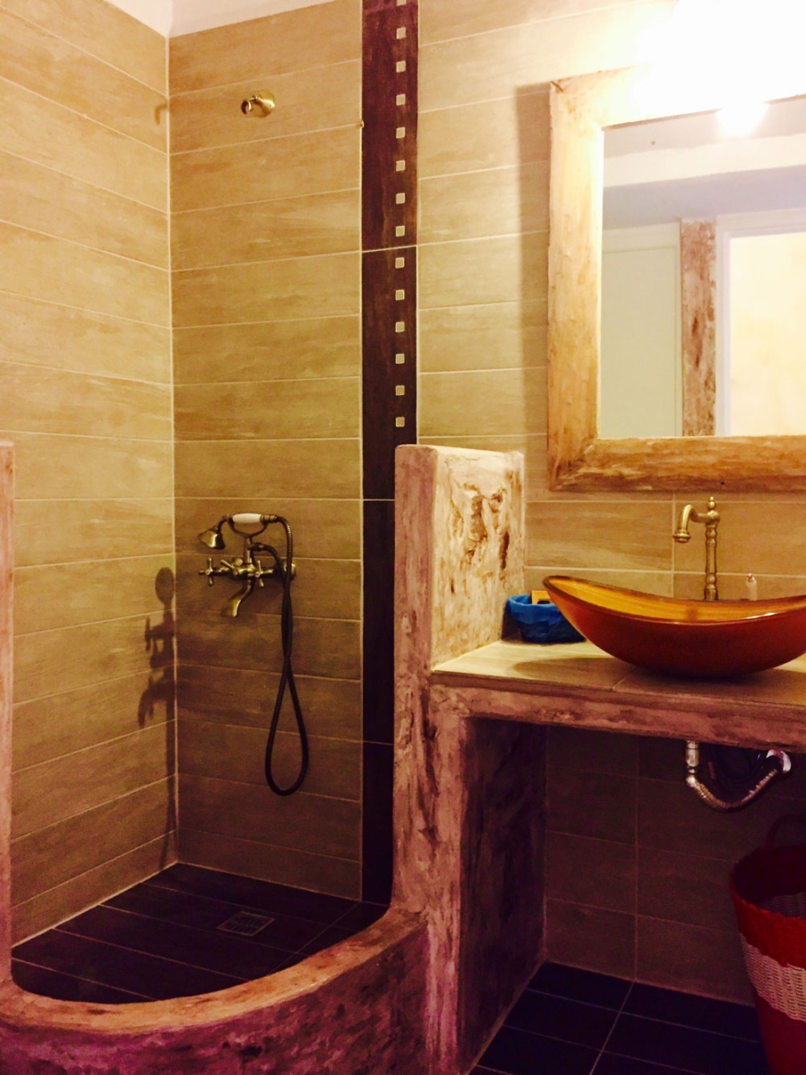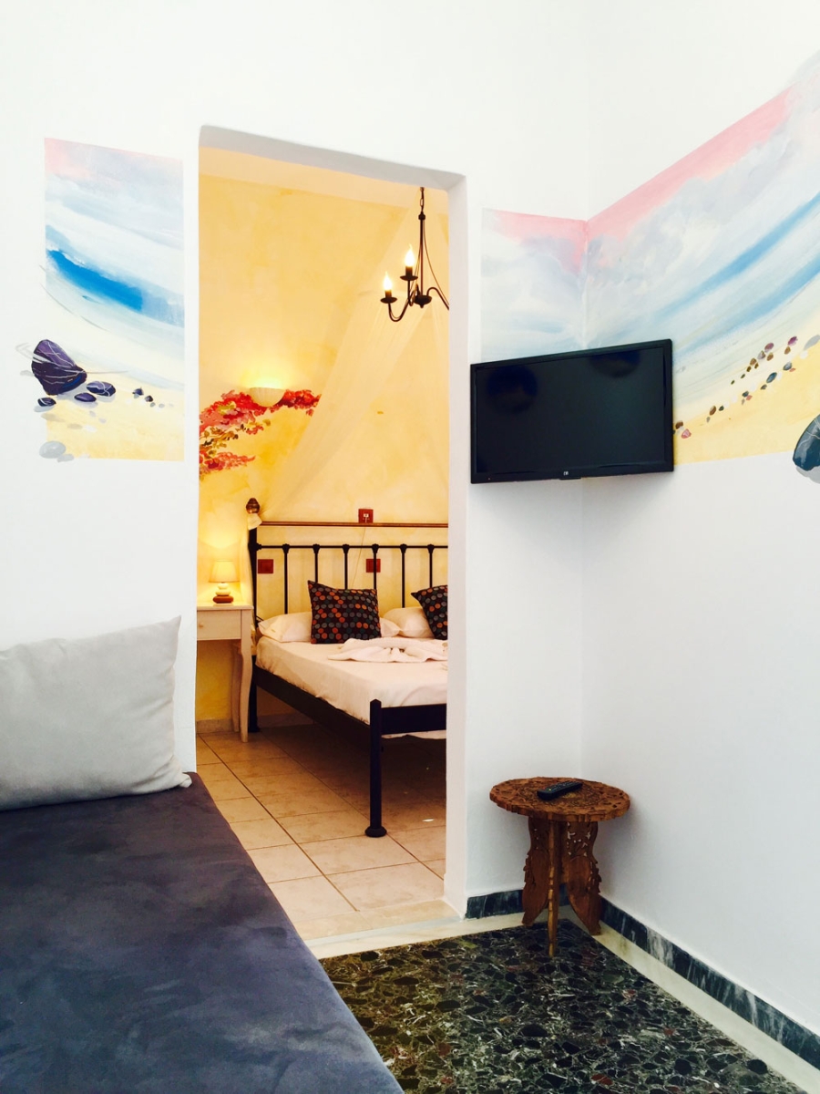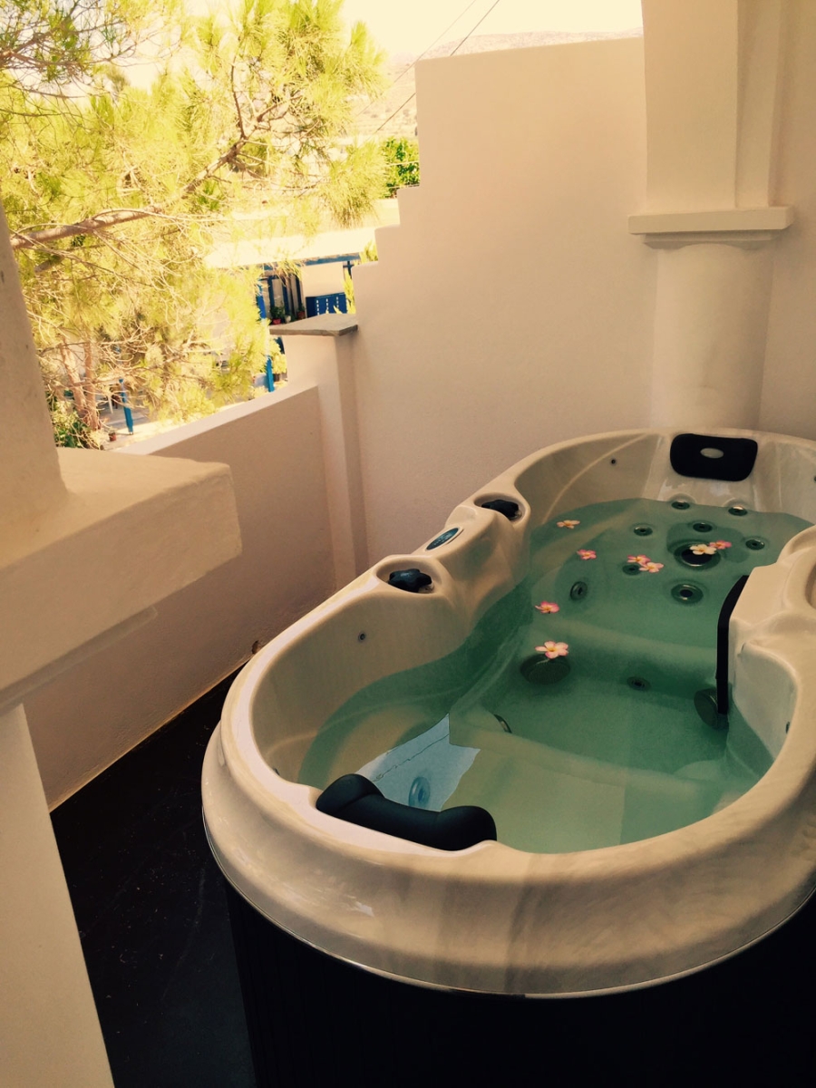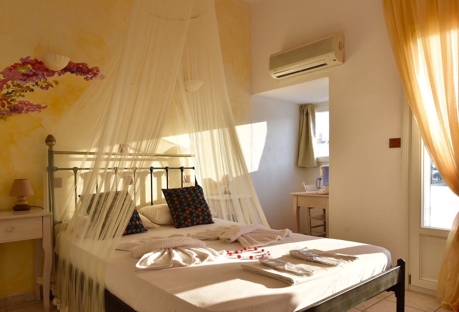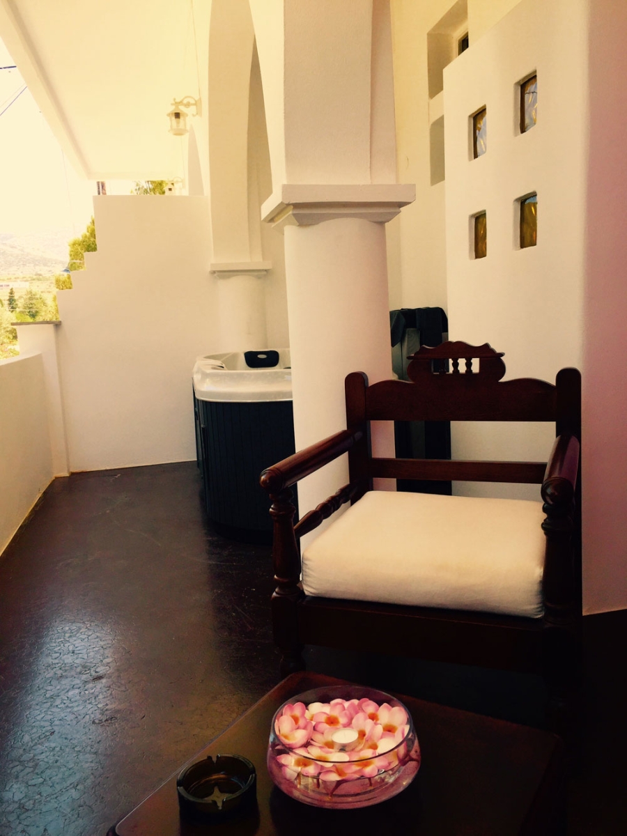 Superior room with one double or two single beds, private bathroom with hydromassage column or private balcony with hydromasaz, build and furnished with the old traditional style of Cyclades .