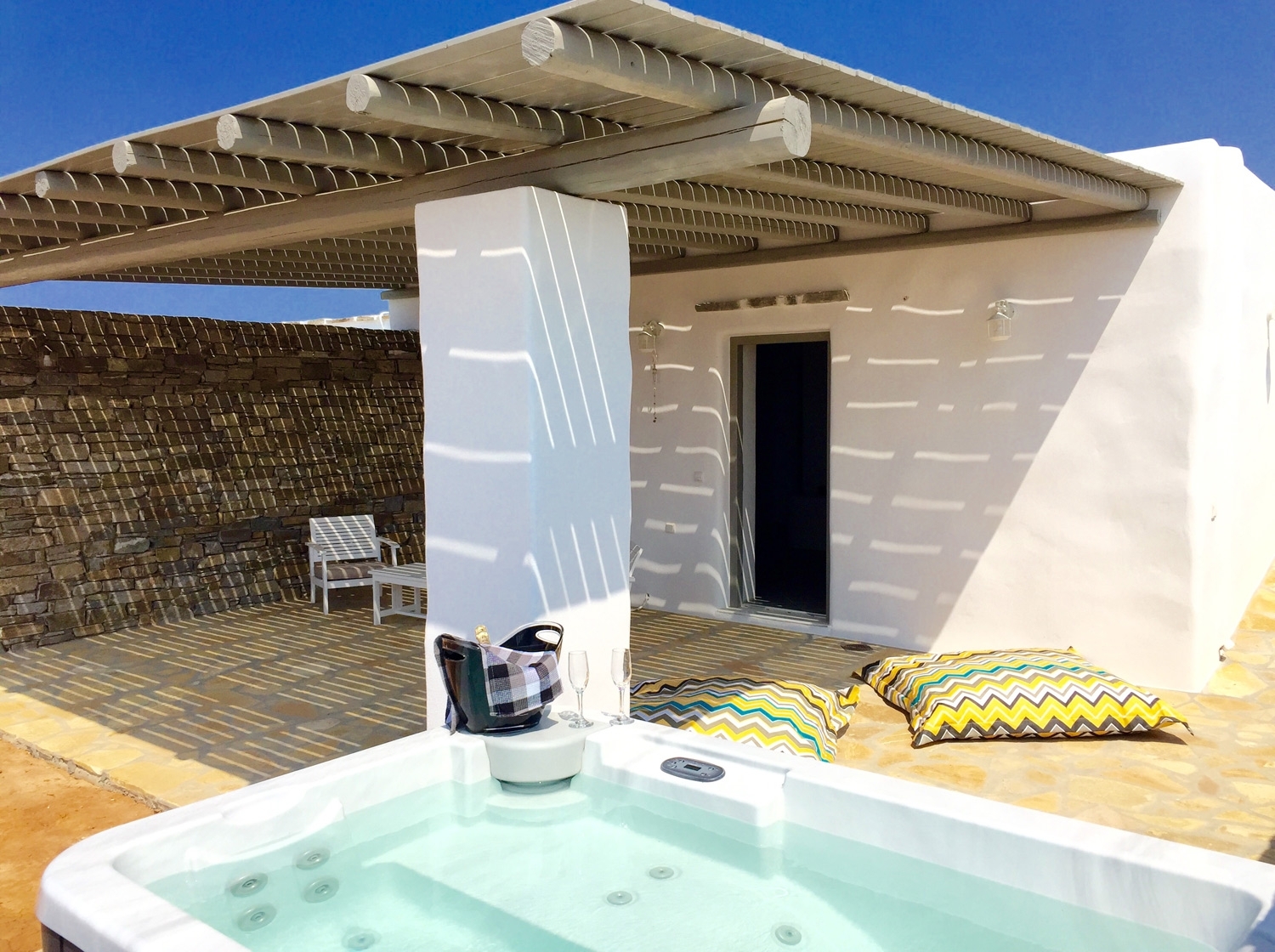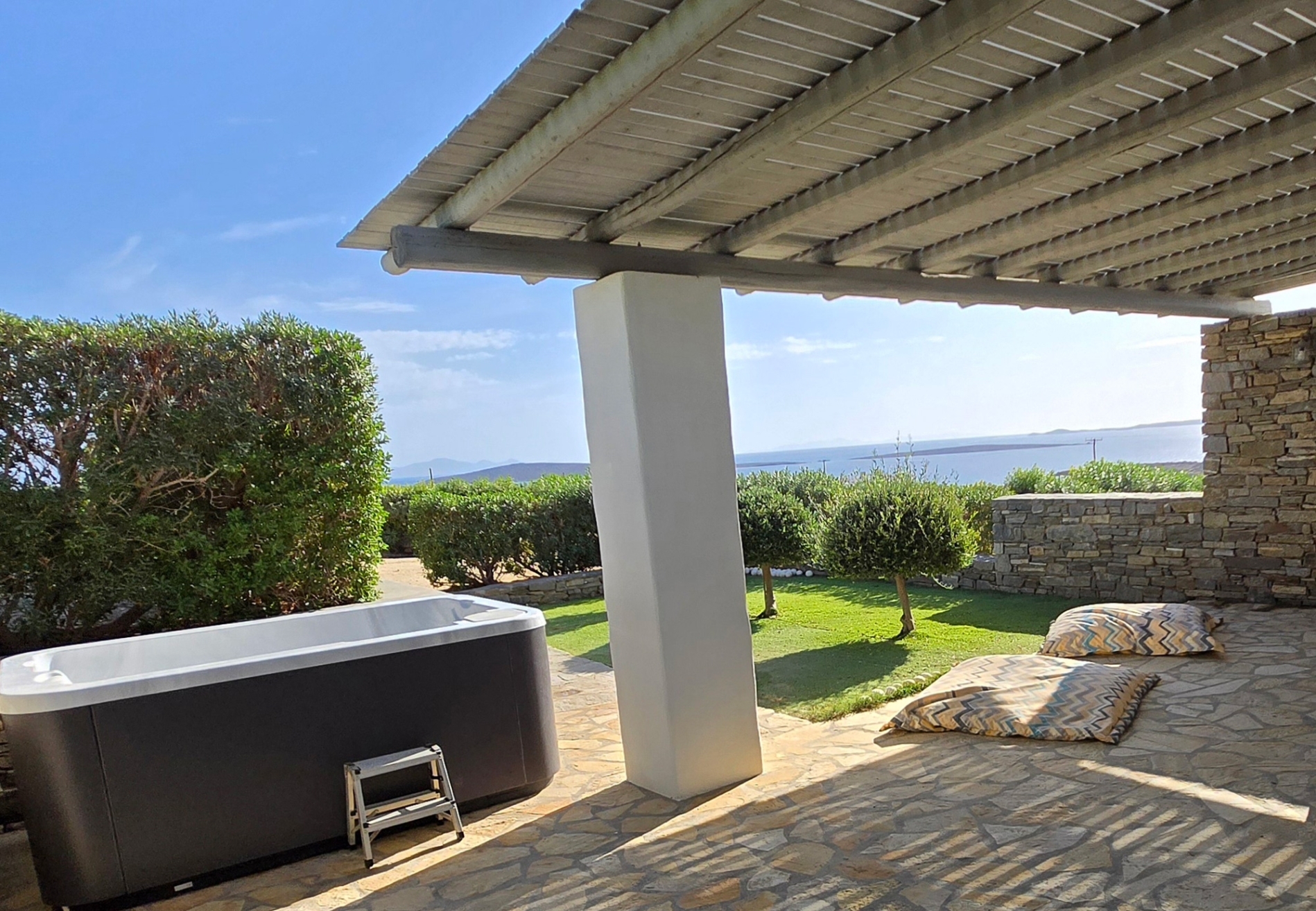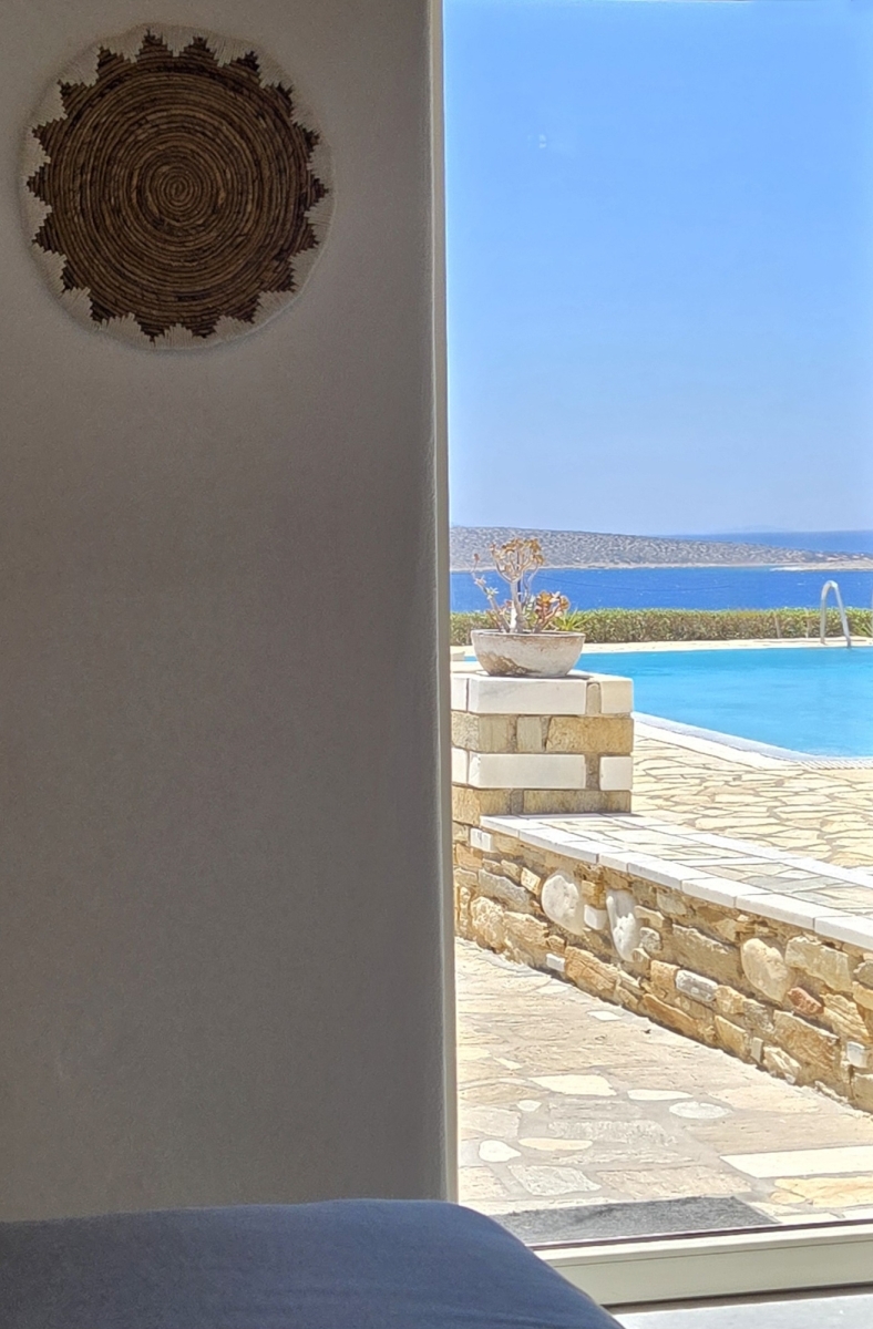 In the beautiful island of Paros, and more specifically in Aliki, we have created the Paros Afrodite Luxury Villas ( Afrodite 4 ) for 6 or 8 or 10 or 12 persons. This beautiful villa has building is situated on a hilltop in Aliki offering panoramic view of the Aegean Sea. It is the ideal place to enjoy that view of Antiparos, Aliki and the neighboring islands.