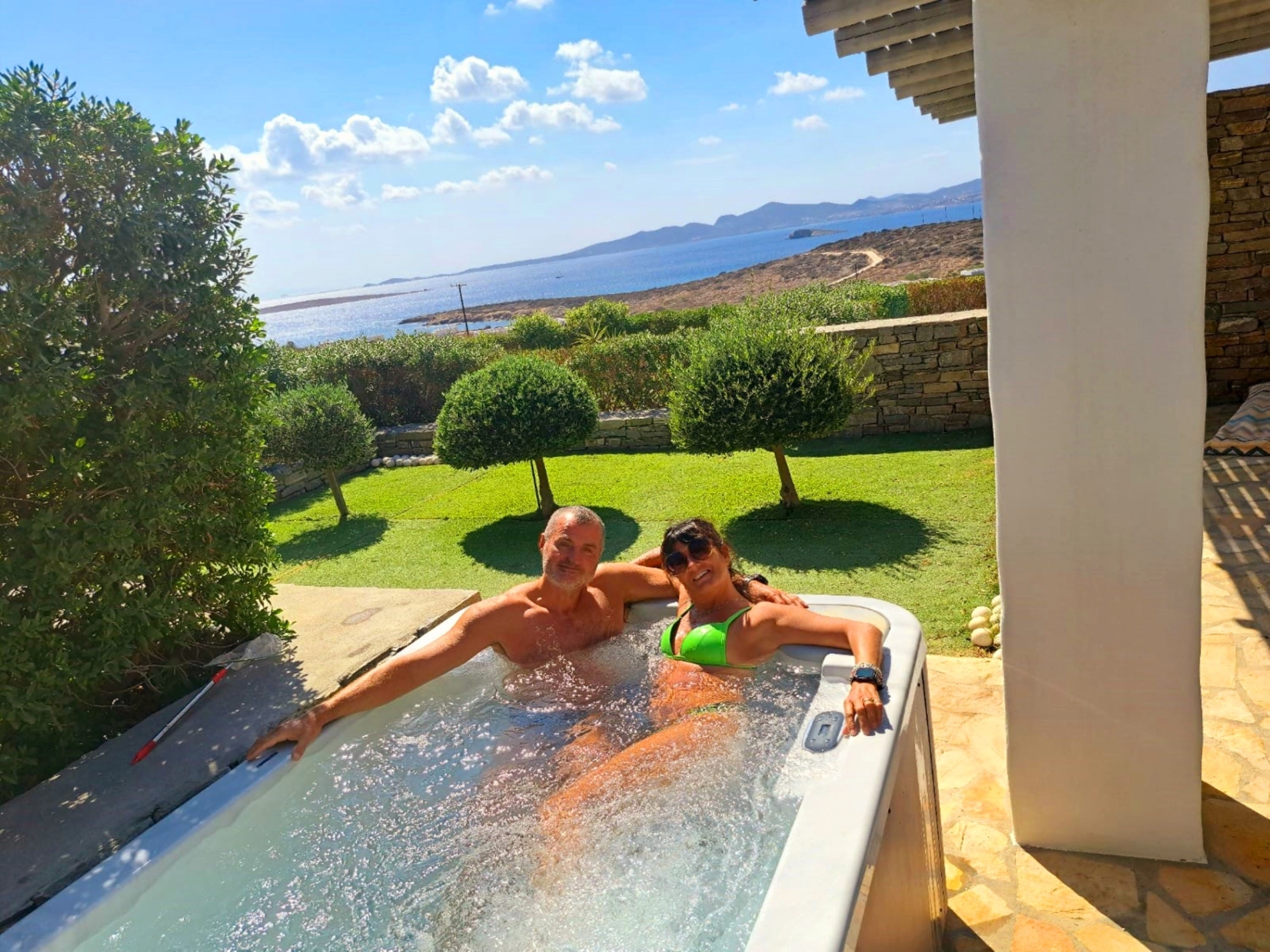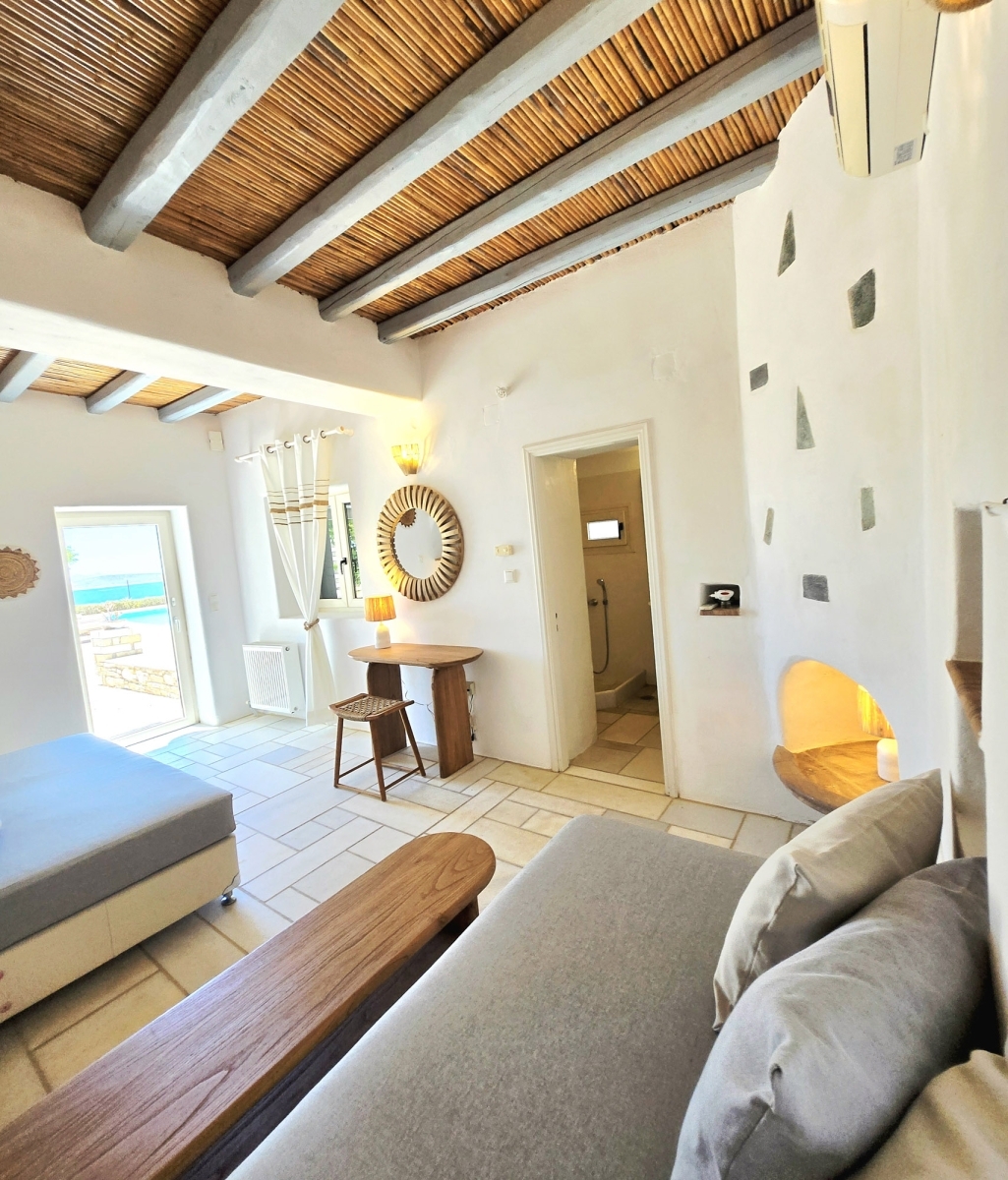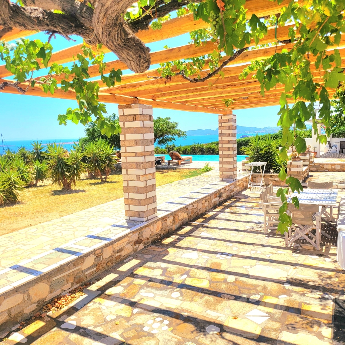 In the beautiful island of Paros, and more specifically in Aliki, we have created the Paros Afrodite Luxury Villas ( Afrodite 4 ) for 6 or 8 or 10 or 12 persons. This beautiful villa has building is situated on a hilltop in Aliki offering panoramic view of the Aegean Sea. It is the ideal place to enjoy that view of Antiparos, Aliki and the neighboring islands.